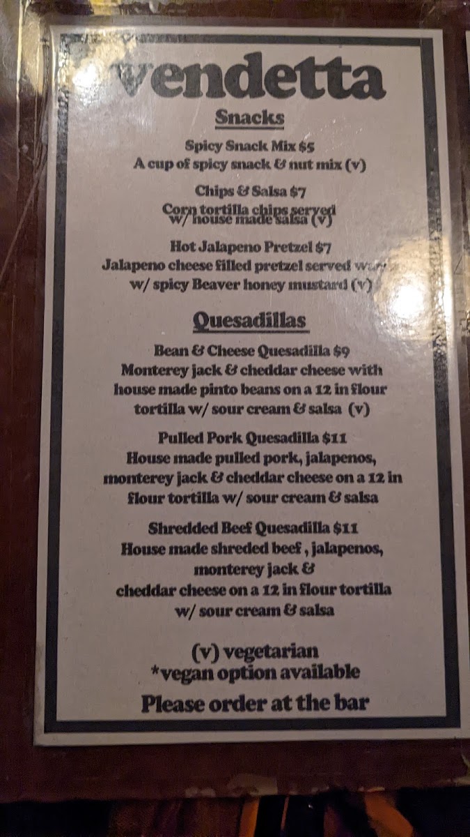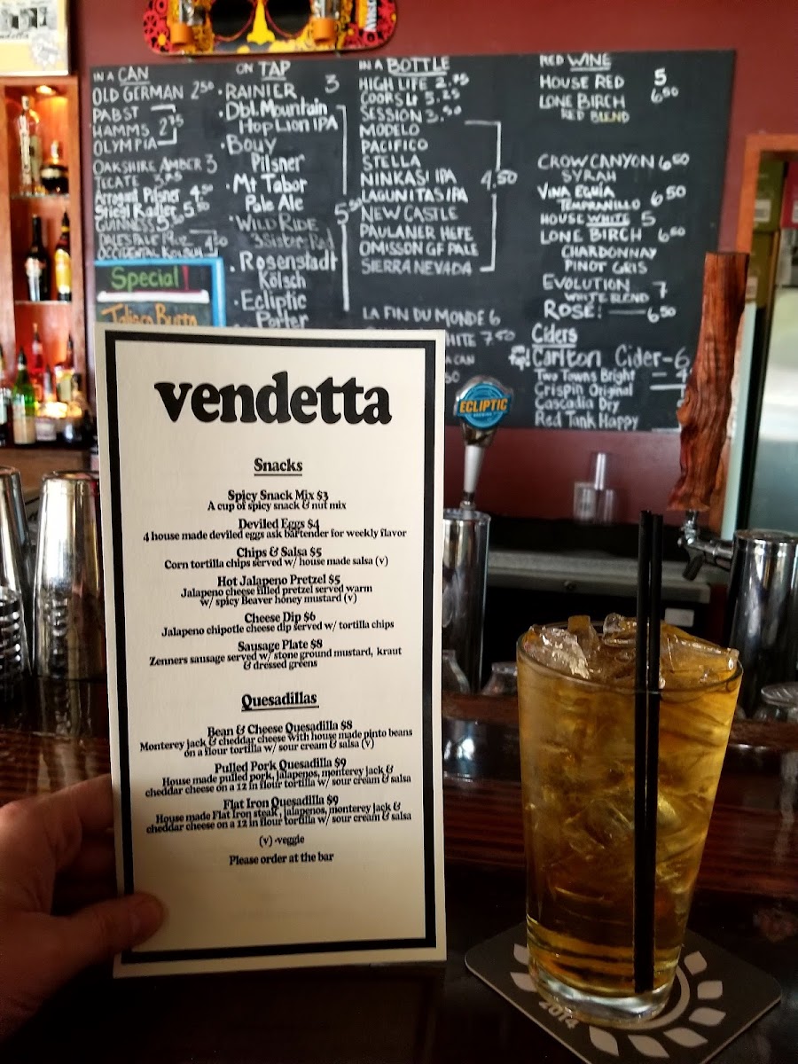 Welcome to Vendetta, a Portland gem located at 4306 N Williams Ave. This inviting spot captures the essence of old-school Portland with its cozy dive bar atmosphere and charming outdoor patio. Vendetta's menu is a delightful exploration of flavors, featuring a variety of snacks and main dishes perfect for any craving.